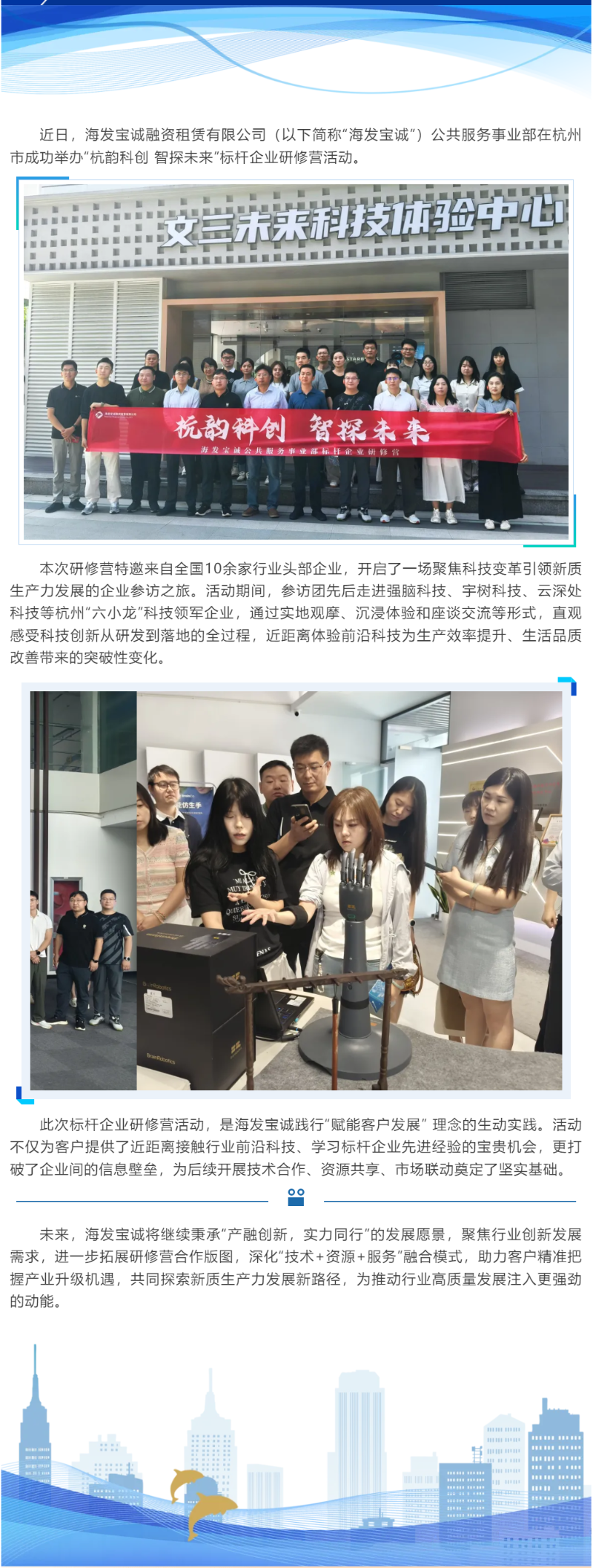 杭韻科創(chuàng) 智探未來(lái)——海發(fā)寶誠(chéng)公共服務(wù)事業(yè)部成功舉辦標(biāo)桿企業(yè)研修營(yíng)活動(dòng)